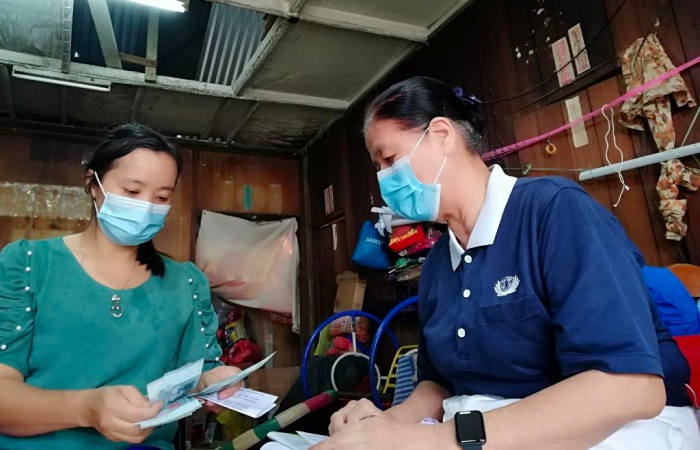 把握慈濟展開的慈善紓困計劃,志工聯絡上村民陳麗珍,請她將慈濟熱線電話廣傳給有需要的村民。