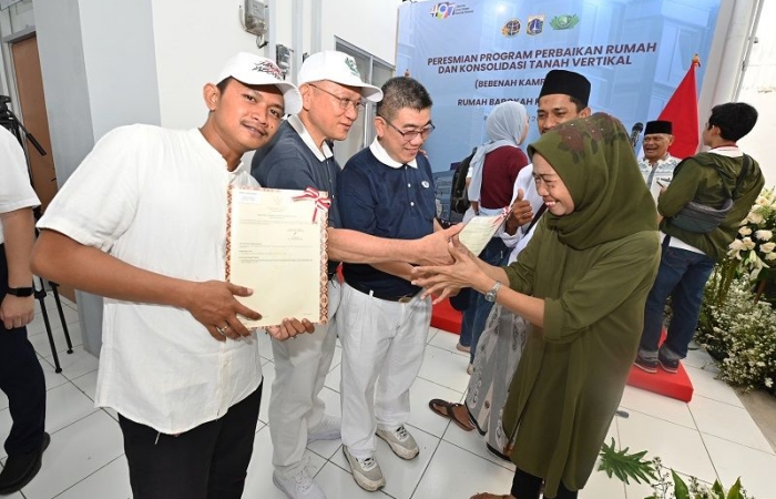 志工恭喜入新家的居民,並祝福他們從此展開新生活。(攝影者:Arimami Suryo Asmoro,地點:雅加達,日期:2024/07/03)
