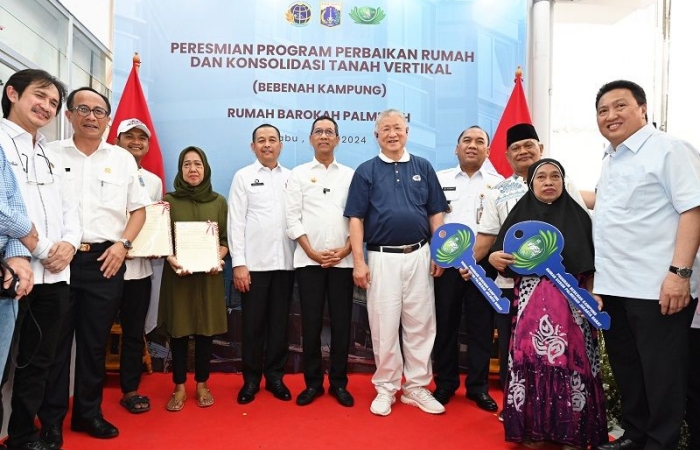 2024年7月3日,慈濟印尼分會與雅加達省政府在巴美拉(Palmerah)進行的扶困計畫正式啟用。雅加達代理省長赫魯(Heru Budi Hartono,右五)、慈濟印尼分會副執行長郭再源(右四)親臨表達祝福。(攝影者:Arimami Suryo Asmoro,地點:雅加達,日期:2024/07/03)