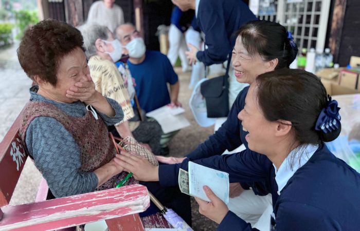 阿嬤領到見舞金後,表示想把這筆愛心幫助其他需要幫助的人,志工們稱讚阿嬤讓善循環。(攝影:吳惠珍,地點:日本,日期:2024/07/15)