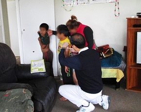 9月13日訪視志工陳相雄、黎明霞會同社工傑森前往關懷,進一步了解個案所需。三十歲左右的可瑞娜和先生來自薩摩亞,但先生目前因案服刑中,將在今年(2016年)11月出獄。目前一家六口依賴政府補助,但扣除房租、債務償還後,每週生活費仍顯拮据。