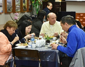 看到大家吃的如此開心,承擔此次香積窗口的周耀英歡喜地說:「雖然準備一百多人的食材,是具有挑戰性的福田,但是有大家的合和互協,反而是件很開心很快樂的事情;但看到大家吃素食吃的這麼香,真是好開心,希望通過自己的點滴付出,能改變許多人對素食就是開水煮青菜蘿蔔的誤解,也願意教大家一起來做素食」。