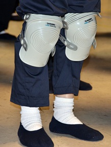 為了圓滿需要一遍遍的練習,志工戴起護膝保護身體。(攝影者:李娉瑤 地點:慈濟北加州志業園區 日期:2011/05/22)慈濟道侶 喜獲麟兒戒口欲