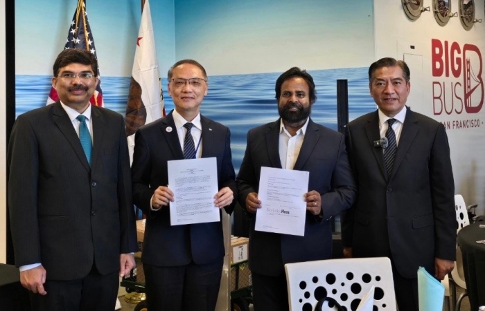 柏克萊開放式論壇(Berkeley Innovation Forum)與慈濟基金會共同合作將於2024年11月在臺灣慈濟舉辦亞洲區開放式論壇。合作協議書簽屬代表,左起:印度駐舊金山總領事Srikar K. Reddy博士、慈濟基金會執行長顏博文、推動開放式創新美國加州柏克萊大學哈斯商學院教授Solomon.Darwin、慈濟基金會副執行長何日生。(圖:慈濟基金會)