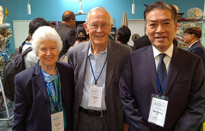 慈濟基金會副執行長與登月太空人Charles Duke夫婦合影。(圖:慈濟基金會文史處)