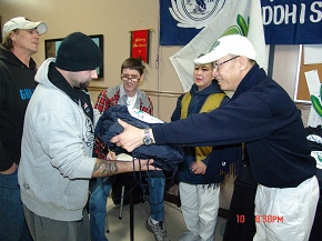 加拿大溫哥華冬令夜間發放,十二月十日晚間,在攝氏零下兩度的低溫中進行。慈濟志工對進入溫哥華東端四間基督教救世軍緊急庇護所住宿的街友們,恭敬配發冬衣及清潔用品。175位街友在接受物資和感受慈濟人無私的大愛與溫暖後,無不歡愉地向志工道謝。臉上露出那一抹真誠感激的笑容。