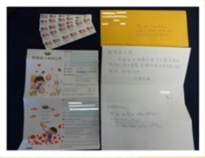 受刑人寄來的信件和郵票。(照片提供:慈濟美國總會)慈濟美國總會同時也在網路上,將這項消息傳佈,也歡迎各界一起加入響應大愛的隊伍,並且將於12月20日帶著所有人的愛心拜訪這位受刑人,希望譲他感覺到善的力量無邊盡!
