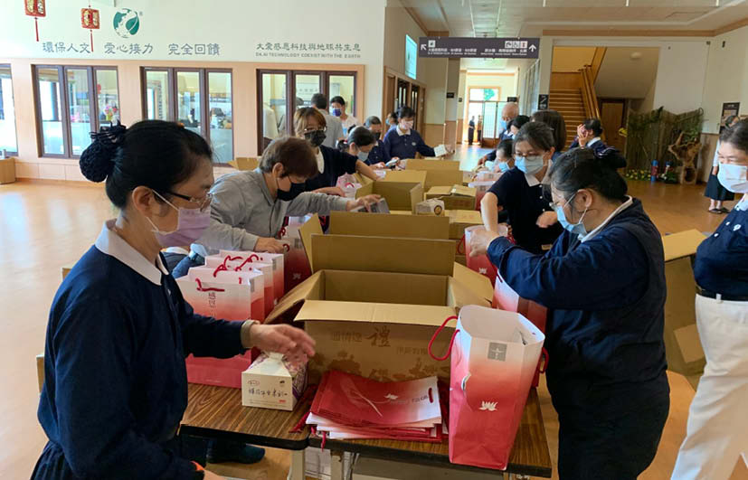 志工們正為警員們的安心祝福包進行清點與包裝。(攝影:李佩璇、許招治,地點:基隆,時間:2022/04/14)(文:取自TCnews 李佩璇 基隆報導 2022/04/14)