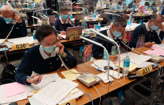 志工陳慧娟說:「雖然有經驗,但這次挑戰更大,因為防疫政策每天都隨疫情滾動式調整,志工也必須緊盯中央疫情指揮中心每天下午兩點的記者會,和民眾互動時才不會造成誤導。」