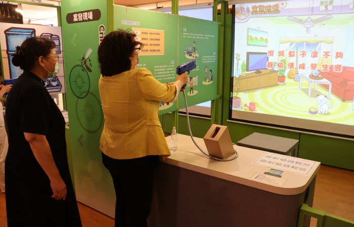 展館內的遊戲互動設施包含AR擴增實境、射擊遊戲、跳舞機、肢體互動等,遊玩過程中累積得分都會記錄在「生命卡」。在防治登革熱主題中,最受歡迎的刺激射擊遊戲「尋找病媒蚊孳生源」,要用紅外線感應槍狙擊容易滋生病媒蚊的地方,落實「巡、倒、清、刷」口訣,讓小朋友玩得不亦樂乎。