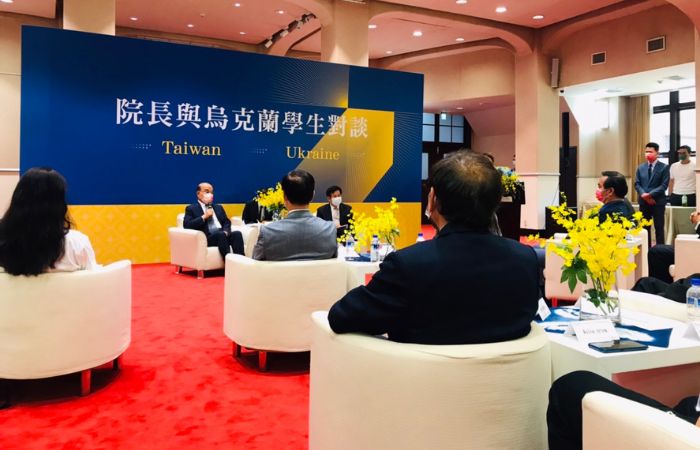 行政院蘇貞昌院長、教育部潘文忠部長7月22日接見目前在台灣各大學學習的烏克蘭籍的學生。(攝影:慈濟大學提供,地點:臺北,時間:2022/07/22)自俄烏戰爭以來,政府與各大學合作以教育庇護烏克蘭,用最快速的方式提供烏克蘭高等教育師生來臺,備受國際關注。目前由目前陽明交通大學、臺灣科技大學、國立勤益科技大學、慈濟大學、大同大學、東海大學,設立安置與助學計畫。