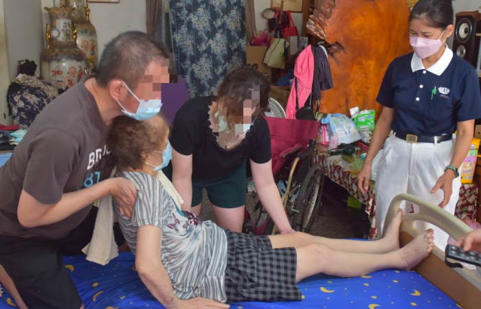 因為沒有電動床,每次要幫老太太翻身或梳洗時都耗費許多力氣,社區照服員鄭小姐建議案家向政府申請電動床,但礙於案家有自有房屋,非中低收入戶,不符條件,遂建議案家上「慈濟環保輔具平臺」申請。