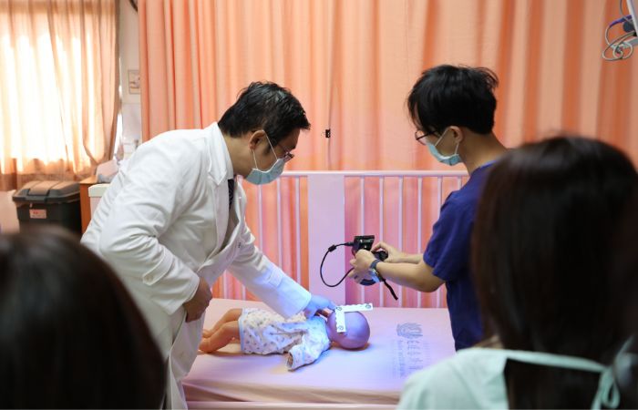 今年花蓮地方法院一共23位法官到花蓮慈濟醫院兒少保護區域醫療整合中心參訪,張雲傑主任負責兒科加護病房驗傷示範,使用多波域光源機驗傷,找出孩童隱藏的受傷部位,吸引眾多法官的目光,並與醫師討論驗傷證據保存方式。(攝影:花蓮慈院提供,地點:花蓮,時間:2023/05/25)急診由護理師提供即時的居家安全衛教諮詢,讓這些意外事件兒少家長們印象深刻,也使意外的再發生率下降,是臺灣兒保醫療中心首創的特色服務。