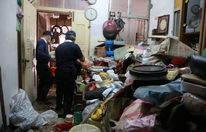 獨居長者住處被雜物佔據,只剩一人可過的空間。(攝影:廖月鳳)齊心協力 還老翁一個安心住所