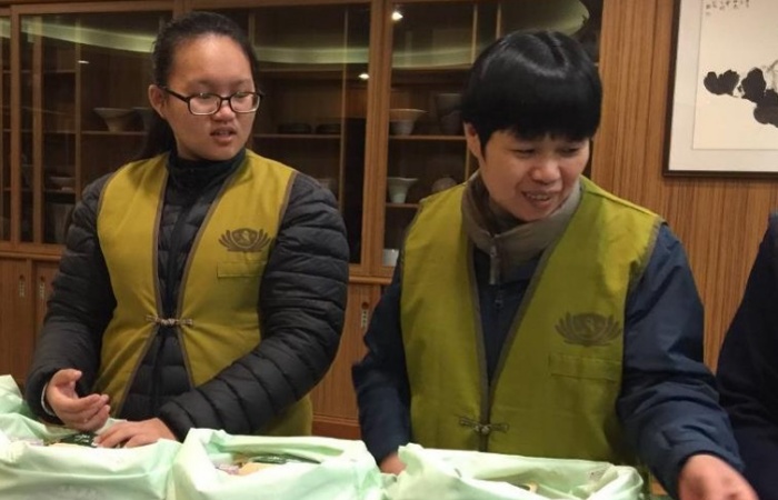 圖說:洪錦華和女兒李若綺(左)在慈濟東區聯絡處做志工(圖:吳佩樺)大愛電視《行動現場》以紀錄片形式,製作社區發生的良善故事,傳播人間溫情。