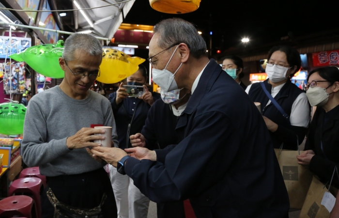 東大門夜市愛心商店店家老闆娘,認同愛心需要點滴累積,她也參加過花蓮靜思堂歲末祝福。(攝影:慈濟基金會)顏博文執行長逐一恭賀店家「新年快樂」,並細心介紹撲滿內的淨斯小禮物。東大門夜市店家見到慈濟人來拜年,紛紛給予熱情回應,尤其當執行長用臺語祝賀店家:「好運龍給您!」,店家們都笑得合不攏嘴!