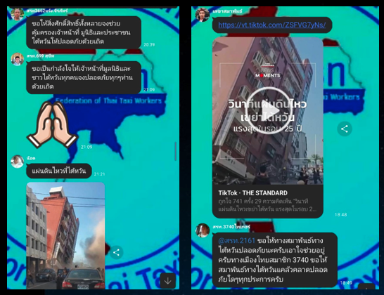 2020年新冠疫情期間,泰國慈濟志工援助計程車司機,度過經濟困頓難關;這次臺灣發生強震,泰國曼谷計程車司機聯手關懷臺灣。他們立即在近3000位運將的群組裡,發起共同祈禱,齊心表達對臺灣災情的深切關注。