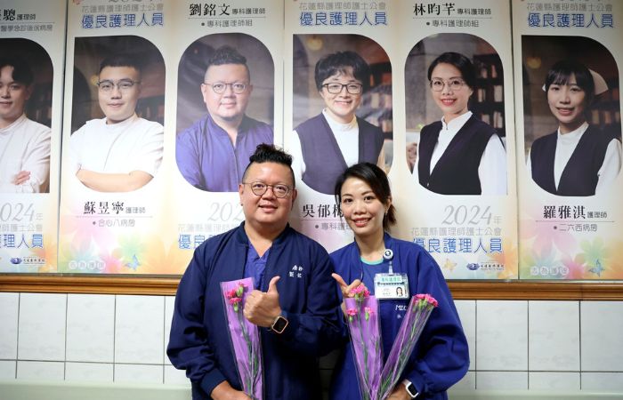 今年獲表揚為優秀護理人員的花蓮慈院急診專師劉銘文與內科加護病房專師林昀芊是夫妻,兩人於急重症領域服務超過20年,還帶領學弟妹在急救教育及擬真教學方面傾注心力,在全國或地區性比賽中屢獲佳績。(攝影:鍾懷諠)