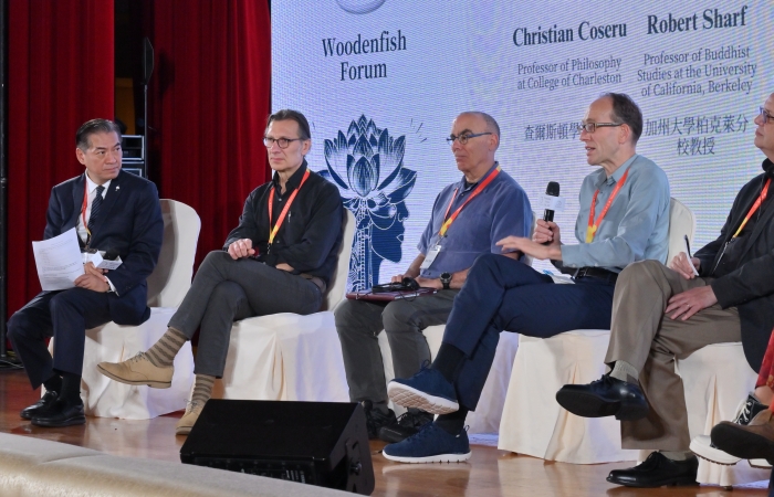 第一場議題以「佛教意識與現代科學」為題,各領域專家學者從正念、自我覺察與自我感知…等能力探究人類潛能,其中,布朗大學正念中心主任,Eric Loucks指出,他的實驗數據顯示,正念減壓能有效降低高血壓病人的血壓並改善年輕人生活模式。日本南山大學榮譽教授Paul Swanson,以《摩訶止觀》與《法華玄義》探討「明、朗、照、皎潔」的意義,強調面對AI浪潮,唯有藉助清明心智,才能真正利用AI來借力使力、確保人們的主體性。