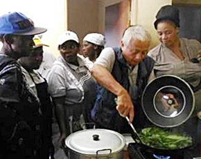 農耕專家劉明助則指導史瓦濟蘭志工們開闢大愛菜園,並且親自教導地瓜葉的栽種與料理。不僅如此,社區中心興建期間,兩位德本本土阿嬤級志工及史瓦濟蘭本土志工也輪值組成香積團隊,帶動營建工人於營建期間響應齋戒及推動工地人文。