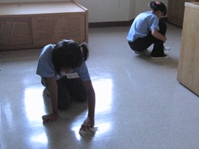 慈大快樂健康營的學員們,整理住宿的宿舍場地。(攝影者:劉秀惠 地點:慈濟大學 日期:2010/07/18)