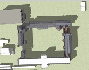 慈濟基金會為內埔國中師生蓋新大樓,建築師將校舍配置改為「口」字型,方便學生活動。(3D模擬圖:張文明建築師事務所提供)師生戴上工作手套,蹲身迅速地用雙手均勻抹平細沙,還有人拿了耙子來回刷地鋪平打底,接著接力傳遞連鎖磚,人人一塊接一塊,學習付出回饋的同時,也把教學融入日常生活中。