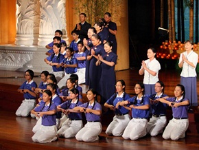 「上人慈示老師是『孩子的貴人』,而我卻是『孩子的仇人』。」經藏演繹的莊嚴殊勝,讓來自馬來西亞檳城的吳美玲老師,不由自己的潸然淚下,深深懺悔自省。她說:「以前教學是以功課至上,班上有一位學生拿鉛筆自殺,進而學生的家長對她提出告訴,因而跑了法院很多年,讓她對教育失望,思考何謂教育?」感恩能在二十年前加入慈濟教聯會,發願在慈濟生生世世走下去,將愛的種子傳遞下去。