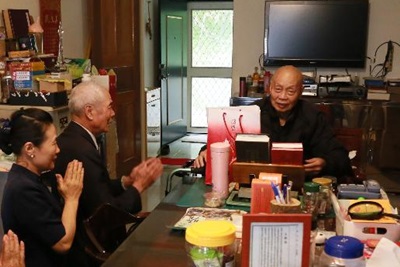志工拜訪常志長老,敬贈結緣品,並恭呈浴佛節邀請函。(攝影者:蔡政勳,地點:新北市新店區妙祥禪寺,日期:2018/04/21)浴佛法會 大精進力