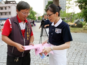 志工宣導中,正巧仁和里里長張烱春也來到民俗公園參加音樂會,他對於志工努力向民眾宣導農曆七月「非鬼月」正信觀念,非常讚賞。他說:「慈濟很努力地在社區宣導正信觀念──『化障為祥和,化魑魅為吉祥』,讓一年四季萬事都太平;並結合善念在社區中推廣環保,宣導節能減碳愛地球,這個精神理念我非常認同。」張里長並應允一定邀約里民一起來參加。