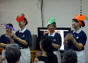 吳欣怡用嫻熟的技巧和清亮的歌聲,帶動大家合唱〈天下的媽媽都是一樣的〉、〈讓愛傳出去〉、〈四季紅〉三首歌,會眾邊打拍子邊輕和,歡喜寫在每個人臉上。搭配宣導吃素的影片與穿插說明蔬食的好處,吳欣怡邀請大家參加每週四下午一點半到三點半,在木柵環保教育站舉辦的香積教學課,在場許多會眾都心嚮往之。
