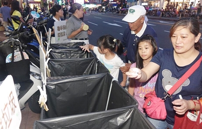 余子健與李淑珍是年年參與街頭環保宣導的志工,余子健說:「我是婦唱夫隨,跟著我家師姊一起做環保,經過我們這樣做宣導之後,大家總是比較不會亂丟垃圾,我就愈做愈開心!」李淑珍則說:「會覺得往年有菸蒂丟在地上,現在經過定點宣導後,很明顯垃圾減量很多,連地上都沒有菸蒂了,真的很棒!」