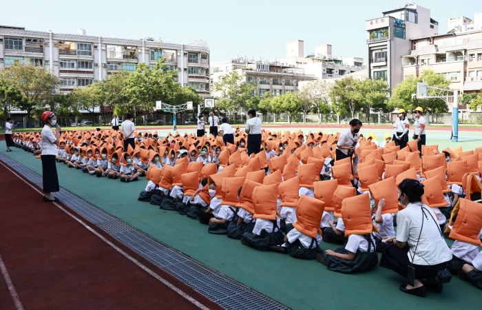 戴起橘色防災帽 臺南慈中國小部 防災演練小尖兵