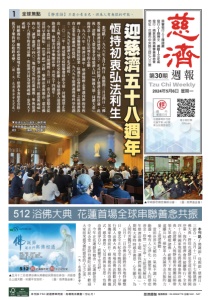 本刊採 FSC 認證標章用紙,為環境永續盡一分心力! 全球焦點 1 【靜思語】 不要小看自己,因為人有無限的可能。 服務專線:03-8266779 分機 542、547 慈濟週報 本刊訊 佛誕節 三節合一 佛大典,將從 序幕,海內外慈 四十八個國家地區 典,由證嚴上人與靜思 領大眾禮敬諸佛,祈願天 遠離兵厄,凝聚眾人虔誠善念 量,上達諸佛聽。 當前世界天災頻仍、氣候不調、局勢 動盪,唯有人心淨化,匯聚眾 的慈悲 善念,珍惜一切生命,方能消災解厄。今 年慈濟浴佛主題﹁讓我們與佛相遇﹂, 期勉大家時時感念佛恩、心生願力、為 人間的苦難付出心力。 五月十二日浴佛活動將在各地持續整 日,臺北中正紀念堂晚間五點四十分舉 行萬人浴佛大典,現場 活動歡迎民 眾攜家帶眷前往,藉著簡而美的浴 儀 式,感念佛恩、父母恩與眾生恩,也藉 浴佛清淨自心、祈願平安吉祥。 今年在花蓮靜思精舍、花蓮靜思堂、 中正紀念堂 並設有佛陀足跡展 歡迎 大家前來感受佛陀慈悲的人文之美。 (文:慈濟基金會) 512 浴佛大典 花蓮首場全球串聯善念共振 迎慈濟五 恆持初衷弘法利 本刊訊 / 一九六六年五月十四日,農曆閏三月廿四日, 「佛 教克難慈濟功德會」成立,正式拉開了慈濟志業的序幕。此 後,證嚴上人帶領著全球慈濟人以「無緣大慈,同體大悲」 的理念,力行弘法利生的志願。 一九八六年,慈濟廿週年,慈濟醫療志業邁向新的里程 碑;為了籌備慈濟醫院啟業,原週年法會停辦。之後 教 育志業也逐漸成形穩固,一九八九年慈濟護理專科學校創 立,一九九九年慈濟大學正式建校。 二〇二二年,新冠肺炎疫情爆發肆虐全球,封城或禁止外 出,人與人之間更必須保持社交距離;全球慈濟人遂透過網 路連線,與精舍同步藥師法會 共度五十四週年。 今年農曆三月廿四日即國曆五月二日,當天靜思精舍從 清晨早課開始 《法華經》共修、藥師法會與朝山 還有佛 陀足跡展、會員聯誼茶會等,慈濟基金會以「感恩與祝福 的心,誠摯邀請〇四〇三地震受災的花蓮鄉親,參與慈濟 五十八週年的系列活動 慈濟共同為臺灣祝福,也為天下 祈禱。 回顧過往,雖然社會環境不斷變化,慈濟本著慈悲喜捨、 拔苦予樂的初心始終未變。 (圖 /文:慈濟基金會文史處) ▲ 慈濟五十八週年,靜思精 舍舉辦藥師法會奉誦《藥師 經》。 (攝影:吳明勳) ▲五月十二日慈濟浴佛大典歡迎民眾前往參加,共振善 念上達天聽,祈願平安吉祥。 (圖:慈濟基金會) ▲早期靜思精舍藥師法會。 ( 圖 : 慈濟基金會 )