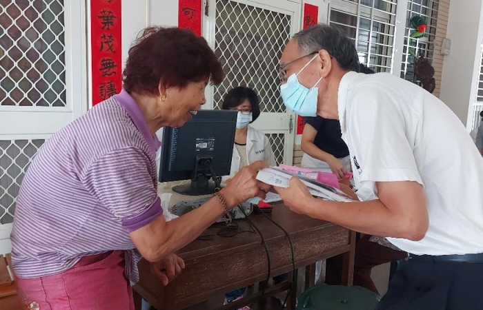 新社山城客家族群居多,說著一口流利客家語的她,正好發揮所長,在現場只要一看到步履維艱長者前來,她立刻上前攙扶,加上個性風趣又善於說笑,逗著一些等待看診阿公、阿嬤們笑的合不攏嘴,十足是個開心果。