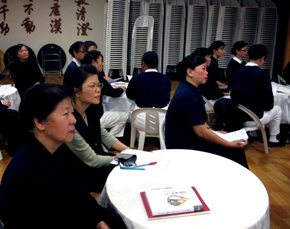 《水懺》共修的時間雖短,但經由師兄姊親身的體驗分享,大家都有滿滿的感動與無窮的收穫。(攝影者:吳玉對,地點:慈濟新泰聯絡處,日期:2011/04/13)張世諒師兄帶讀「滅障七心-七心總論、怨親平等」。罪的形相無量無邊,但歸納起來,不出三大類:「一者煩惱,二者是業,三者果報。」他懺悔自己於八年前曾起煩惱心。