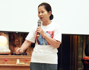 慈濟志工駱純美的分享讓彭水珠有感而發:「去年朋友邀約到巨蛋參與《水懺》演繹,因為懺悔經文淺顯易懂,讓我感動得想掉淚。因為感動,所以現在每個星期五我一定會來共修精進。」