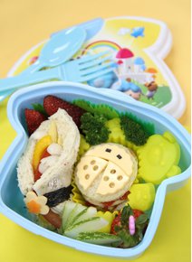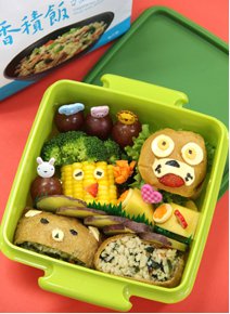 小叮噹麵包。媽媽們只要多花一點時間,一些心思,也可以準備如此色彩豐富,含有豐富營養,令人垂涎欲滴的兒童幸福素餐盒。對於所採用的食材、分量和烹調方式,媽媽可以自行斟酌,因為媽媽最瞭解自己家裡的小朋友的需求。