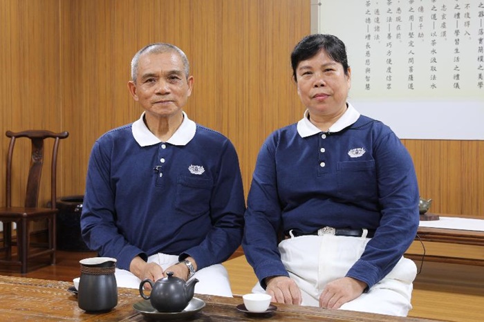 許淑美(右)和先生張進儀(左)分享在參與921工程的歷程與心得。(攝影者:許素貞,地點:慈濟萬華靜思堂,日期:2019/03/30)跨出家門 學會照顧人秘訣