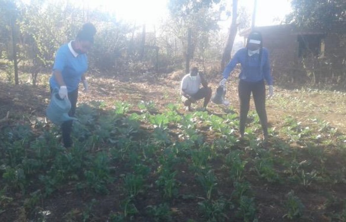 南非本土的志工Wanda在供食站附近開闢了一片菜園,辛苦栽培。不過,她種的第一批菜被偷走了,她仍然不放棄,重種第二批,因為她相信這些菜一定可以幫助到更多更多人。(南非慈濟志工提供)