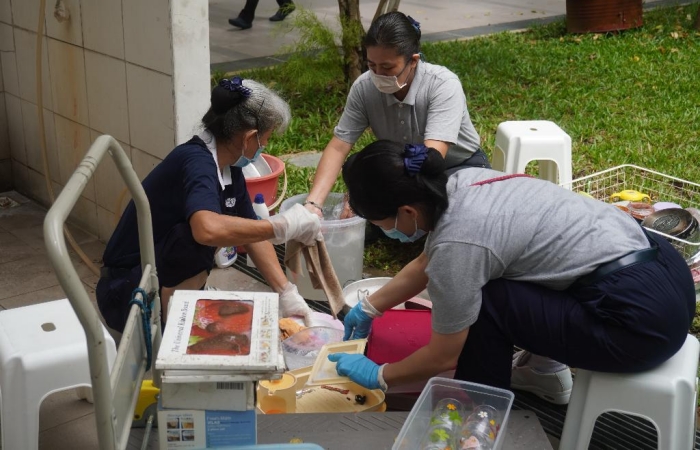 負責此活動的是訪視幹事符愛琴和個案主責志工蕭麗華,在資深訪視幹事簡志興陪伴下,開始策劃和動員。有鑒於新冠疫情(COVID-19)的各項防疫措施,動員人數限制在十五至二十人。志工團隊也分成不同組別,每組約五人,除了避免交叉接觸,還要做足防疫措施,並運用顏色貼紙歸類組別,包括打掃組、分類組、清洗組和交通組等。