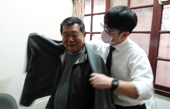 雖然面臨關節退化的問題,但張先生還是很有活力,中氣十足的笑聲不斷,直到同仁要離開時,他還一直送到巷口,笑著揮手道別。