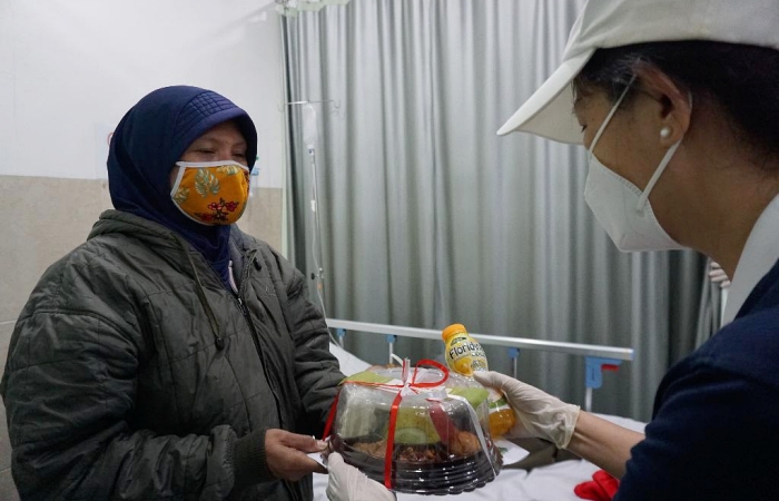 吉祥月期間,8月17日恰逢是印尼國慶日。為了慶賀當日的雙喜臨門,雅加達慈濟志工做了一百份「錐形薑黃飯」,分別送到三家醫院——金卡蓮慈濟大愛醫院、烏克里達醫院(RS Ukrida)與卡托陸軍醫院(RSPAD Gatot Soebroto)。也送給病患家屬和弱勢鄉親,讓他們感受溫暖的愛與關懷。