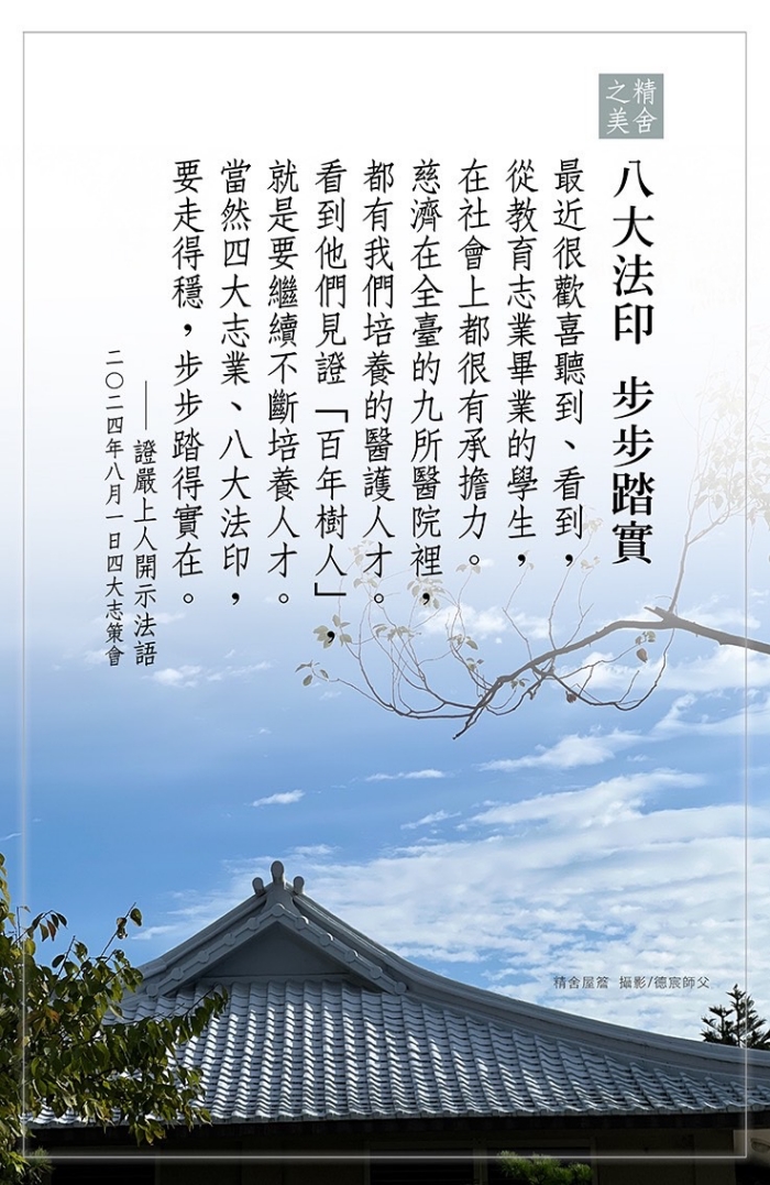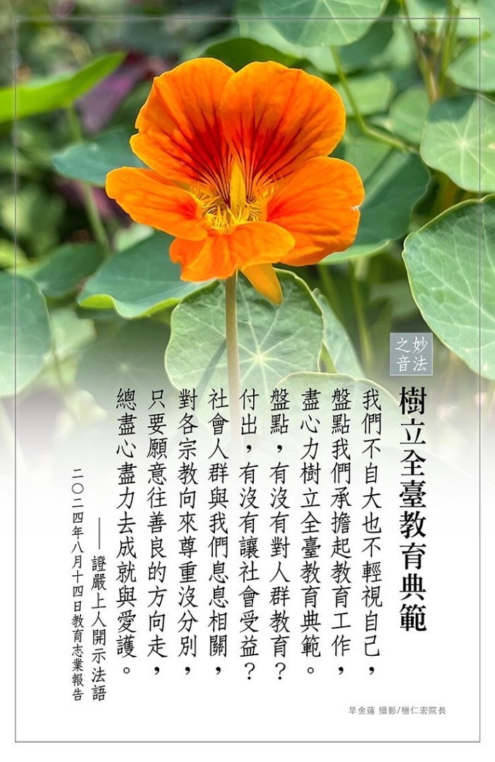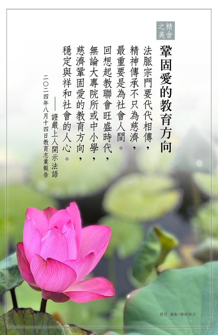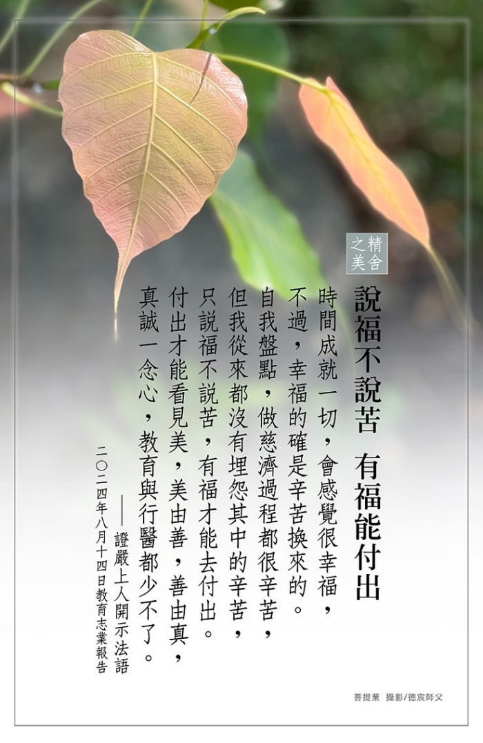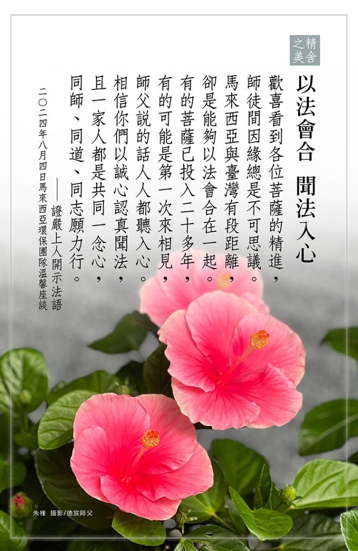 這一波的疫情,讓大家總是『停、聽、看』,才能平安。現在社會生活匆匆忙忙,要整個家庭都在家裡很難,這一波讓人人有家聚的機會,所以盡量在家裡不要往外跑。我們現在大哉教育,身心修練一下,把心收回來,很自然一切就會降低、降溫,就不會有溫室效應升高,造成氣候變遷、人間多污染、感染。我們要轉知識成智慧,何況是在一念間絲毫的偏差。所以要顧好一念心,把心戒定慧,而且要時時啟發自己的信願行。戒定慧、信願行,若能夠常常這樣平衡,我們就是六度萬行——救自己、度別人,可以救天下。 ——證嚴上人開示