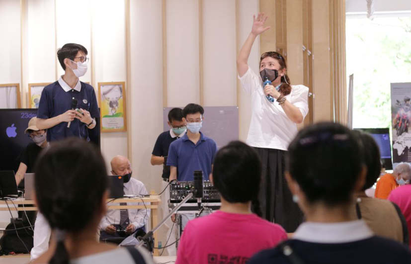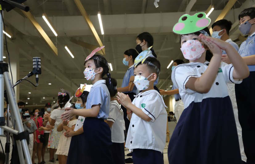新加坡知名藝人劉玲玲在舞臺上與大愛幼教中心的學童一同合唱推素兒歌,小朋友們頭上戴著可愛小動物造型,和親子班、慈少班學員一起比劃手語,氣氛溫馨又可愛,吸引不少觀眾。