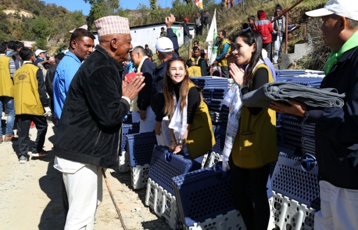 志工進一步思考如何幫助他們,舉辦了首次的冬令發放,蕭佩芳說:「希望我們給他的物資、豆類,以後會讓他們更有營養。」 冬令發放時,志工更以話劇演出的方式,帶領民眾走入竹筒歲月,讓尼泊爾會眾更了解慈濟,也啟發他們的悲心,將善與愛的能量注入他們的心中。
