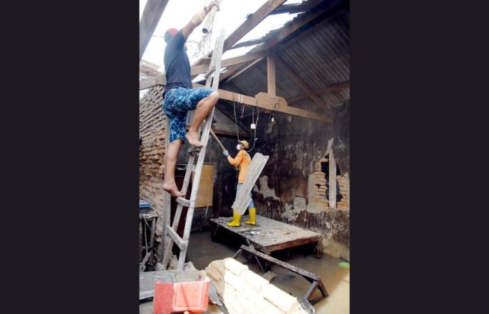 家裡淹水期間,阿古斯與孩子只能搬到隔壁母親的家。阿古斯收入不多,生活簡陋,因此也沒有多餘的錢可以翻修房子。家裡不僅時常淹水,長時間被淹水浸泡的墻壁也搖搖欲墜。