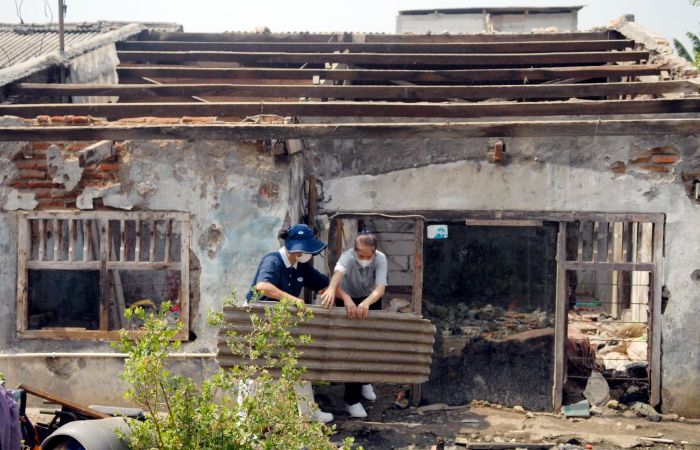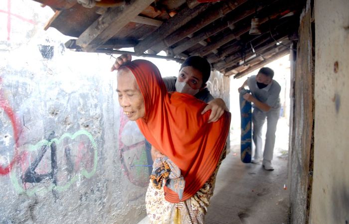 卡馬爾・穆阿拉村是印尼北雅加達一座靠海的漁村,村裏的民宅多數低於路面,一旦海水漲潮就會淹水。慈濟在當地實行兩階段的扶困援建計畫,分別在2019年與2021年交屋。當天志工再次走進該區為第三階段的援建計畫進行勘察。阿古斯家裡的情況與幾戶慈濟援建計畫受惠家庭原本的遭遇差不多。