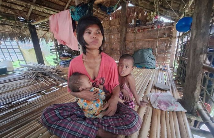 在發放會後,志工也親自到訪有需要的家庭。瑪怡巧(Ma Ei Chaw)一家,丈夫是造木炭的勞工,每月只能給她2萬緬元(約合新臺幣303元)的生活費,還必須照顧家中兩個年幼的孩子。