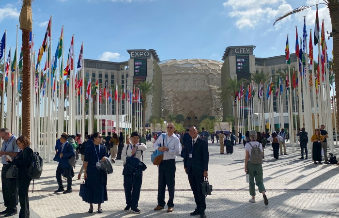 11月30日,COP28「第28屆聯合國氣候峰會」在阿拉伯聯合大公國杜拜市(Dubai, United Arab Emirates)的「世博城」盛大開幕,長達兩週的會期,有180位國家代表成員、9萬7千名氣候專家、各國企業代表、非政府組織成員及40萬阿聯酋人民共同參與。慈濟代表團參加第一週議程的成員總計六位,慈濟大林醫院副院長林名男、氣象專家彭啟明博士、慈濟「全球合作發展事務室」成員林美鳳、楊濟洪、慈濟基金會代表裘曜陽、凃君曄等人。