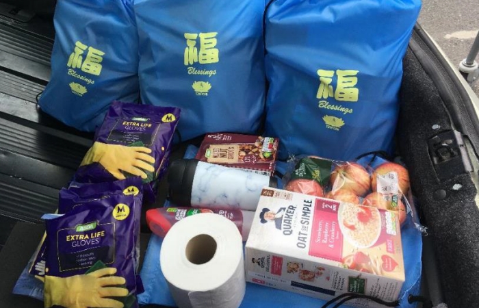 住在附近的志工梁欣伶,得知火災訊息,即開車約十五分鐘前往勘查。11日她看到住戶金敏驊在臉書上請求協助,但目前還是處於疫情禁足期間,梁欣伶回報聯絡處,取得共識後,獨自前往旅館關懷。